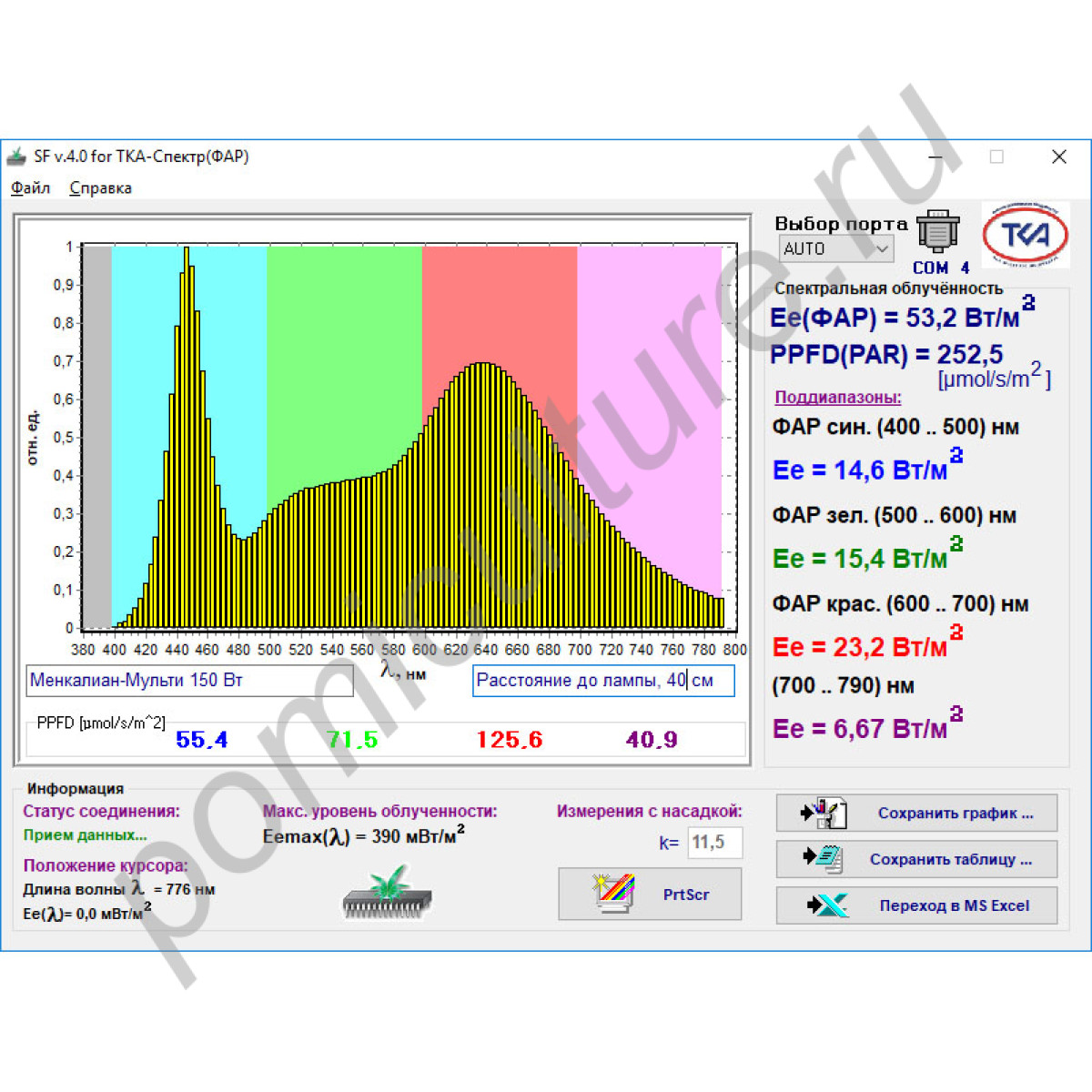 | ФАР (Ee) | 53,2 Вт/кв.м |