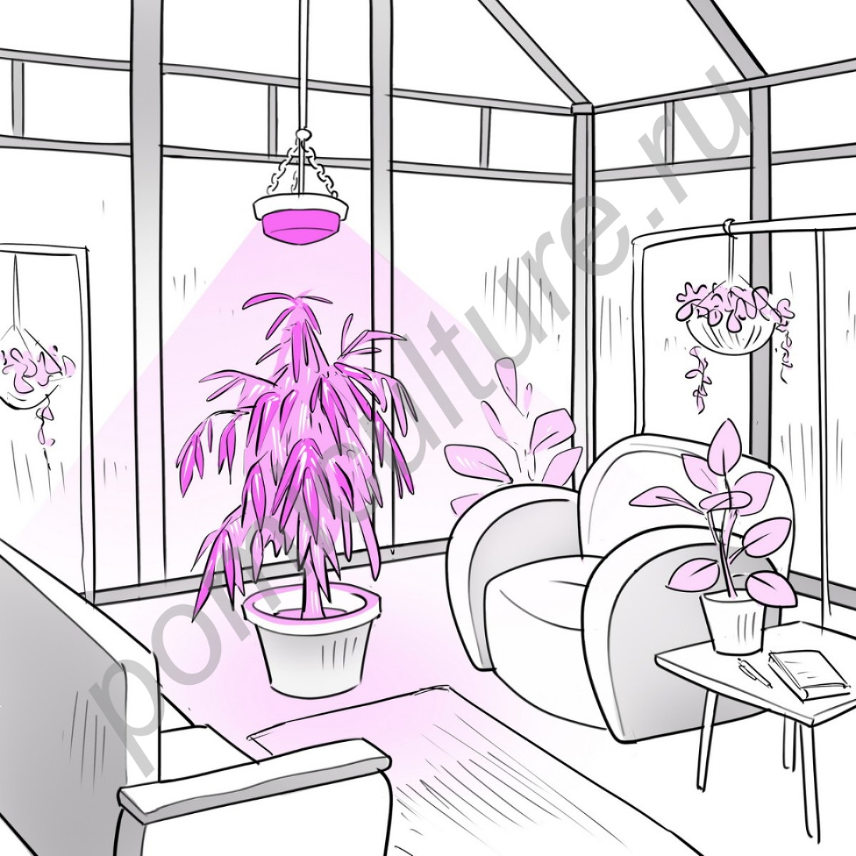 Высота подвеса фитолампы - от 30 до 100 см над верхними листьями растений.